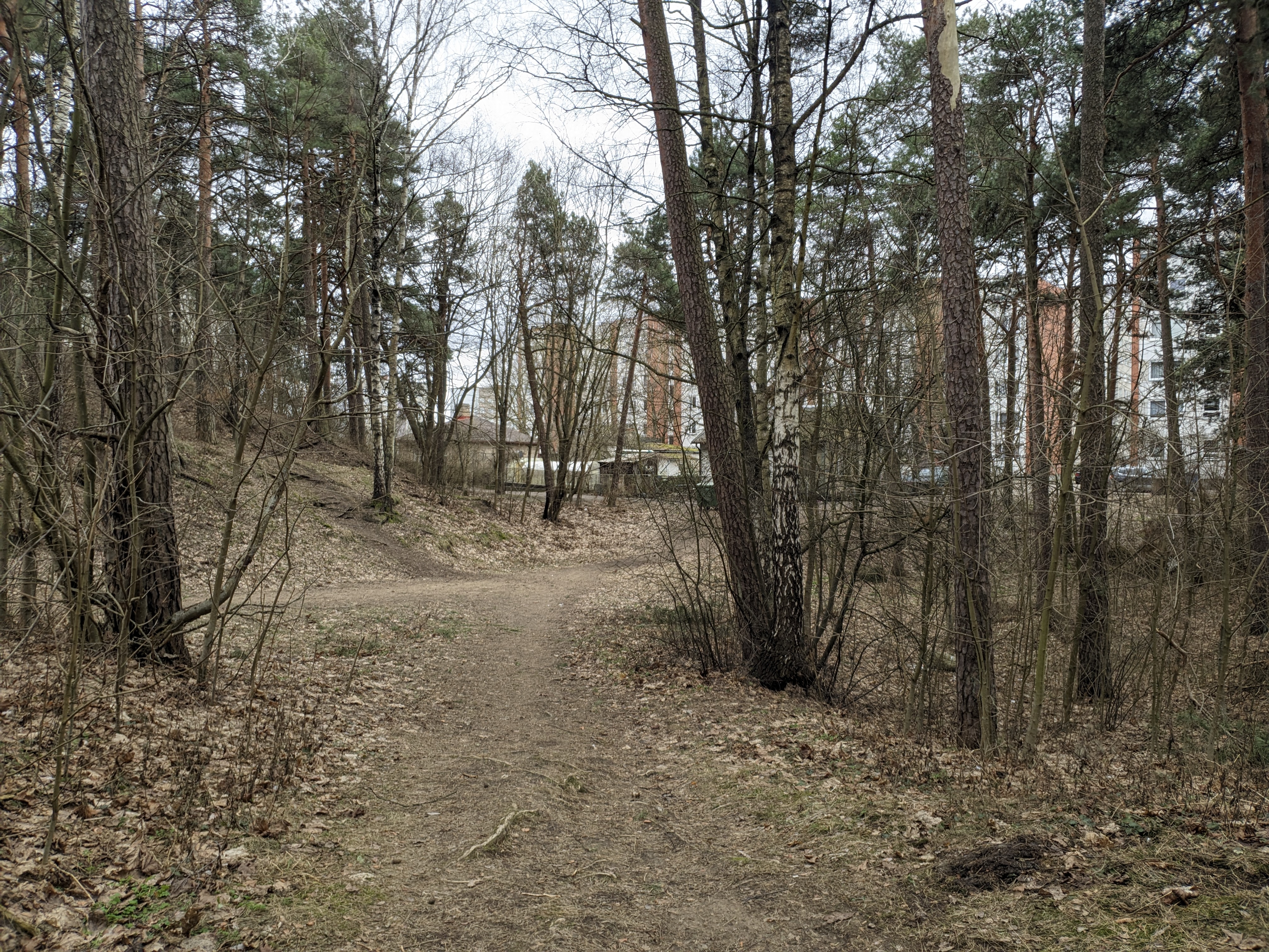 No sākuma bija doma pabraukt tās pāris pieturas ar autobusu - man nosacīts slinkums bija iet kājām. Pieturā skatoties autobusu sarakstus, man sanāca topogrāfiskā apmaldīšanās, likās, ka uz autobusu būs jāgaida kā minimums 11 minūtes. Un tāpēc - nu iesim kājām. Protams, kā atgājām no pieturas, autobuss tajā pienāca. Tad, gabaliņu paejot - "iesim ka caur mājām, tur vēja mazāk; klajākās vietās nepatīkami nedaudz pūš". Protams, ejot cauri kvartāliņam, nedaudz apmaldījāmies "trijās priedēs". (Vēlāk gan noorientējāmies un izgājām tur, kur tika plānots). Bet nu tajās "priedēs" ieraudzījām ŠO, zemāk esošajās pāris bildēs redzamo.